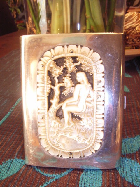 Auf einem Flohmarkt in Lüneburg wurde diese Zigarettenetui aus 800 er Silber mit der Darstellung mit einer nackten Frau unter einem Baum gestohlen. Das Etui dürfte wohl einzigartik sein.